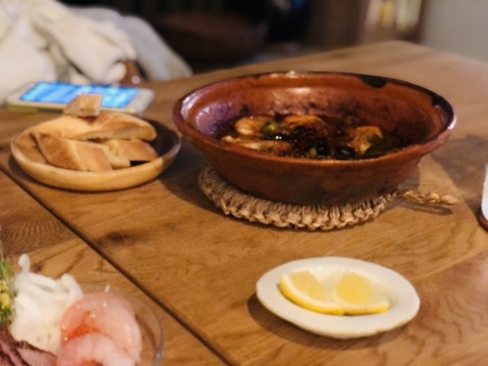 たかえびはアヒージョにもして頂いた。柔らかいので殻ごと食べてもOK。えびの旨みたっぷりのオリーブオイルに自家製パンをひたして頂き、ビールをごくり。お酒がいくらでも進んでしまうよ~。