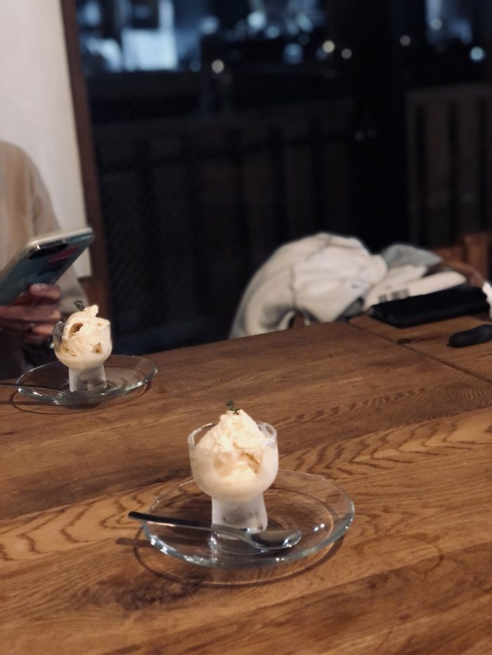 自家製アイスクリームは、クリーミーなのにさっぱり。大満足のディナーを軽やかに締めくくった。