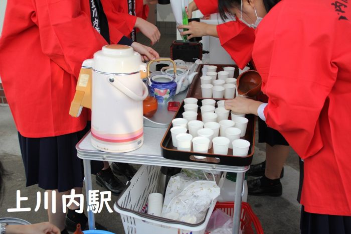 川内商工高校の生徒さんと西郷つんによるお出迎え