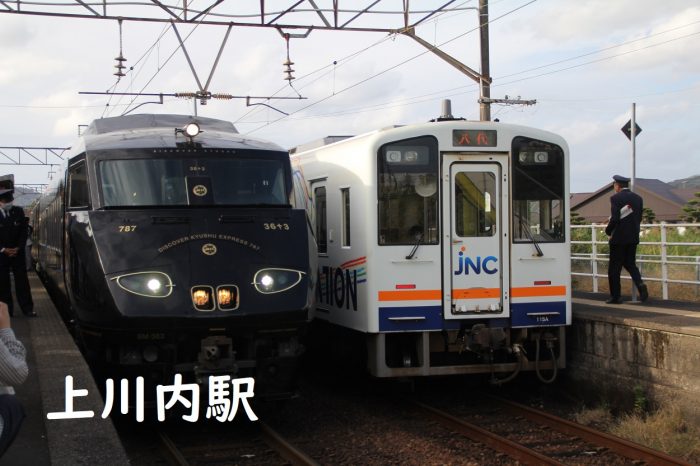 八代行きの肥薩おれんじ鉄道の普通列車ともここで離合しました。