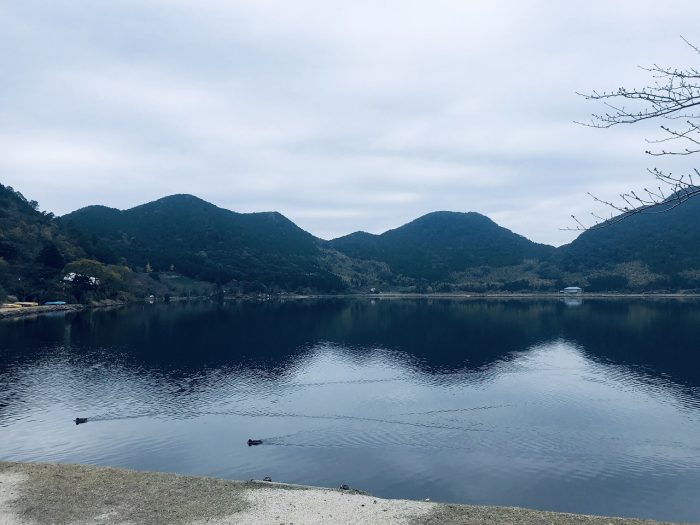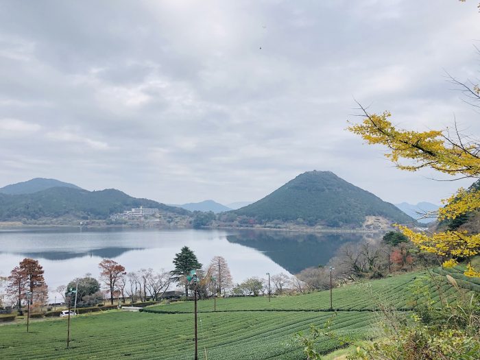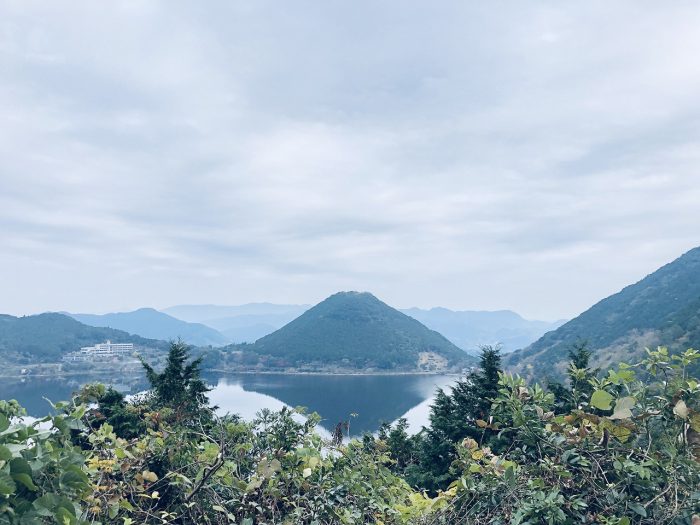 藺牟田池は飯盛山の噴火でできた火口部に水がたまってできた火山湖です。周囲を標高400~500mの火山群に囲まれています。愛宕山、舟見岳、交葛(こかずら)山、竜石(たついし)、山王嶽、片城(かたしろ)山、飯盛山を外輪山七山と呼ぶようです。