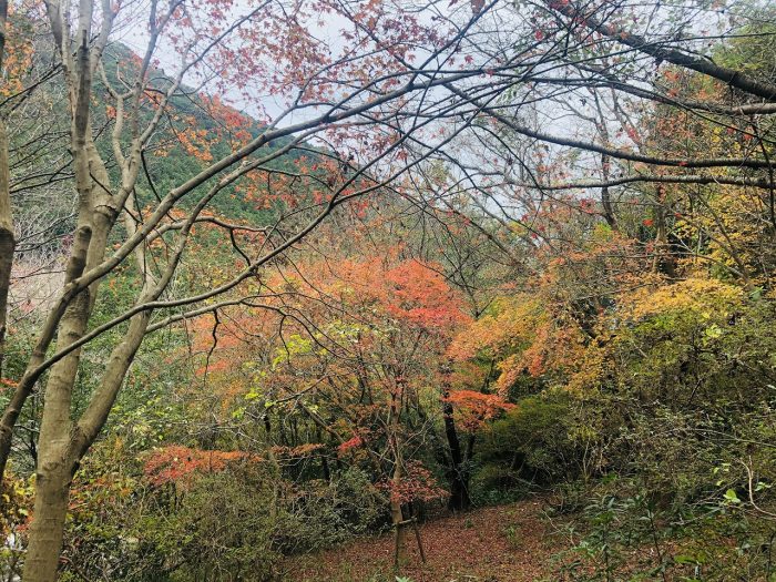 紅葉を見ながら歩いて行きます。登山道は整備されていますが、やや急こう配の道が続きます。息が上がるので、初心者はゆっくり登っていきましょう。