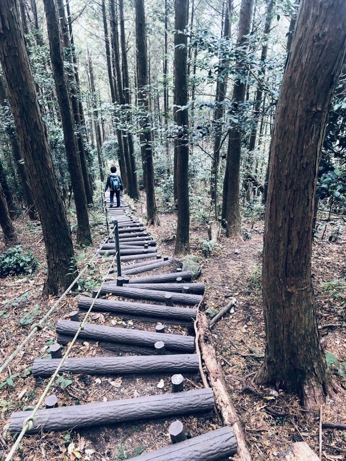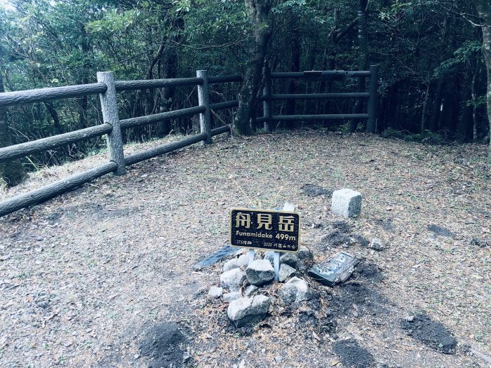 舟見岳山頂もあまり眺望はありません。ここから外周道路に向けて下っていきます。新しい階段が整備されていました。