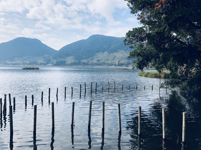 藺牟田池、深さはどれくらいだと思いますか。意外と浅くて、一番深いところで2.7m、平均水深0.8mの「浅い湖」なんだそうです。