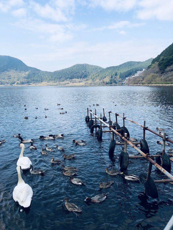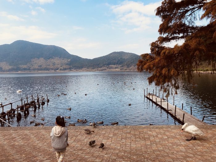 藺牟田池ではボートも楽しめます。白鳥やカモたちと遊びましょう。