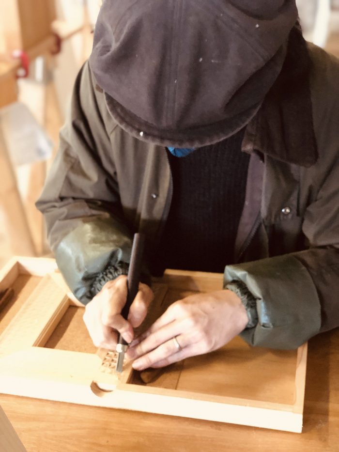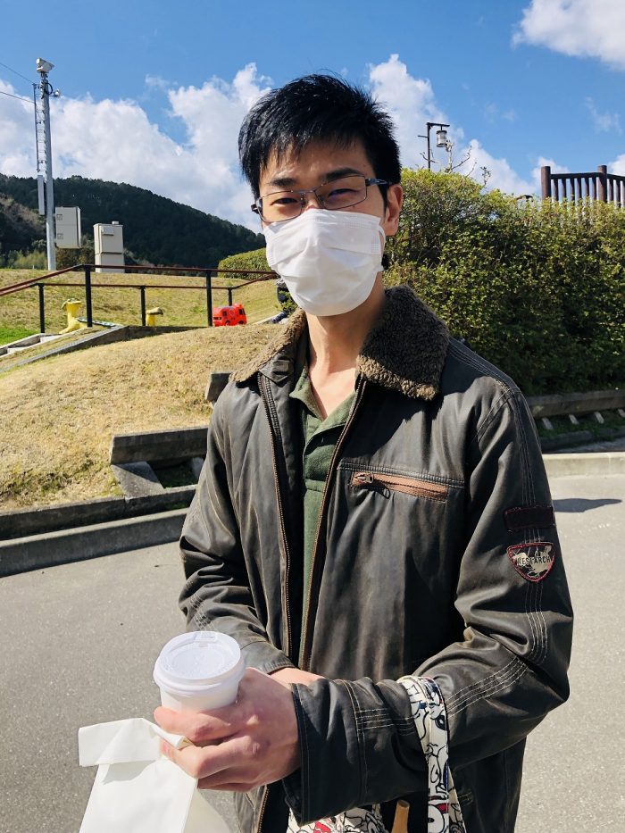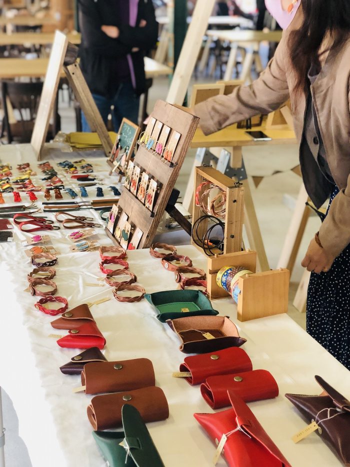 会場でお会いした薩摩川内市西向田のフレンチレストラン「ビストロ・ル・ソーリュー」シェフ。レザークラフトや先ほどのカッティングボードを購入。「これいいなと思って、買いました」と笑顔。今後の出店も考えているとのこと。楽しみです。
