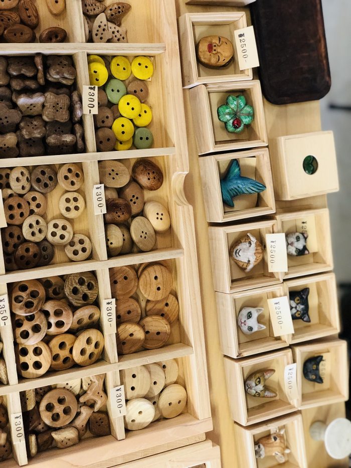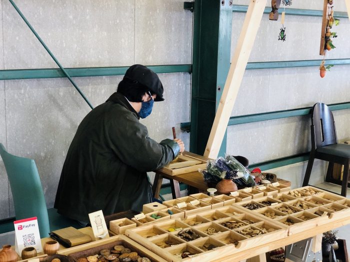 薩摩川内市を拠点に活動中の直木工さん。リバーフロントマルシェの運営にも関わってきました。味わいのある動物やボタンが可愛い。