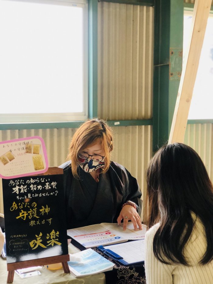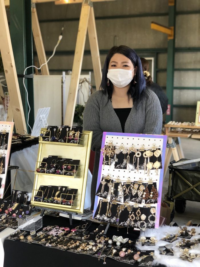 ご家族そろって出店されていました。バンドクリップ、アクセサリーなど、薩摩川内市を拠点に販売しています。顔見知りのお客さんと偶然会って、談笑する場面も。