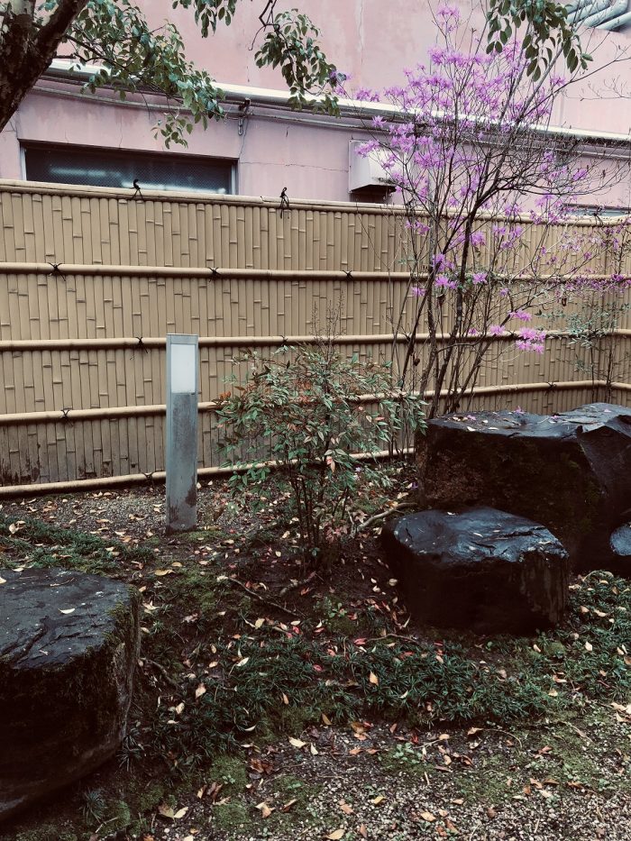 今の季節、お庭の岩つつじが綺麗です。こちらの「岩」のほかに、ひのき風呂温泉付き和室「森」もあります。