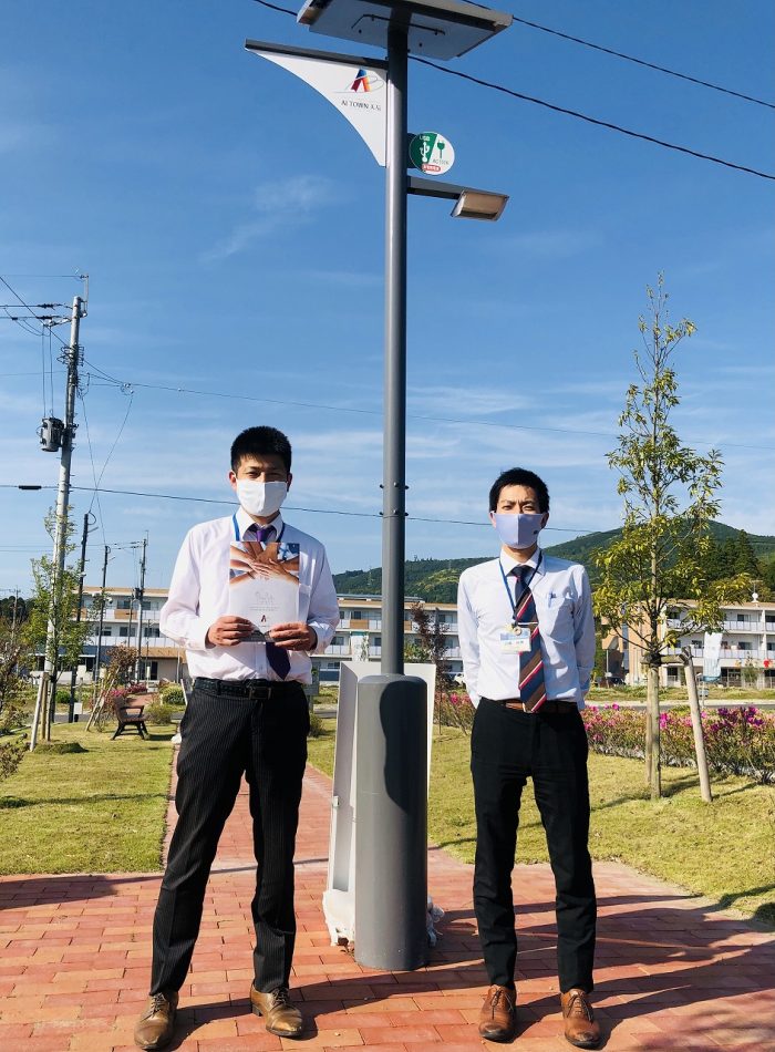 薩摩川内市の産官学が提携して開発したスマコミライト。天辰のまちを照らします。