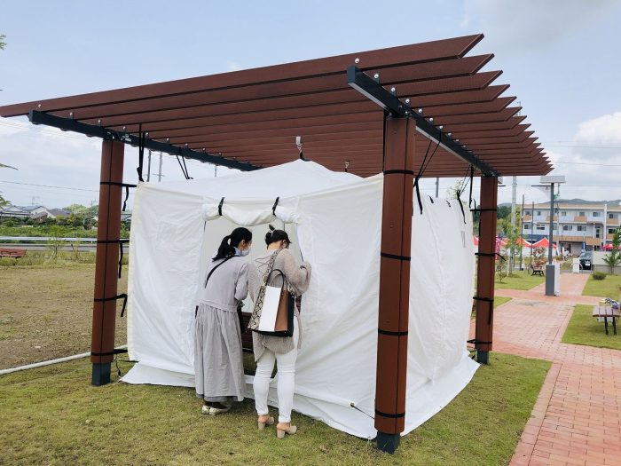 災害時にはテントシートで囲い、一時避難場所等として使うことが可能です。