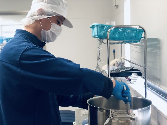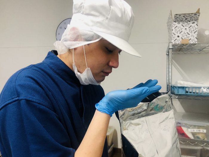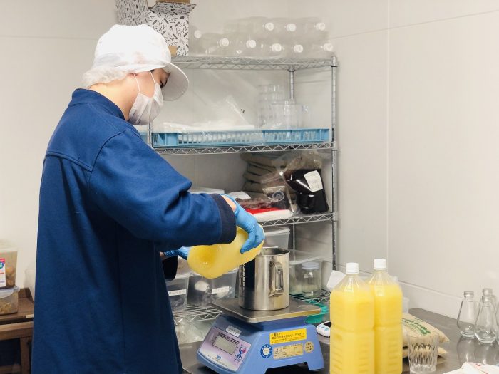 上野さんは薩摩川内市西方の地域おこし協力隊を経て、下園薩男商店へ入社。協力隊時代、西方海岸で塩づくりに取り組んだ経験が今回のコーラづくりにも役立っていると話します。作業場にはスパイスのいい香りが漂います!おだやかな漢方薬のような香りもして、身体に良さそうな雰囲気です。