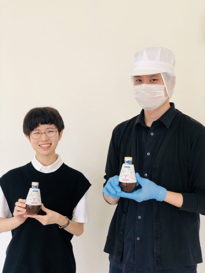 クラフトコーラを開発したのは、薩摩川内市と阿久根市を拠点に事業を展開している下園薩男商店。アイデアあふれる下園正博社長のもと、若手社員が様々な新商品を送り出しています。広報の橋口毬花さん(左)とクラフトコーラ開発担当の上野実さん(右)