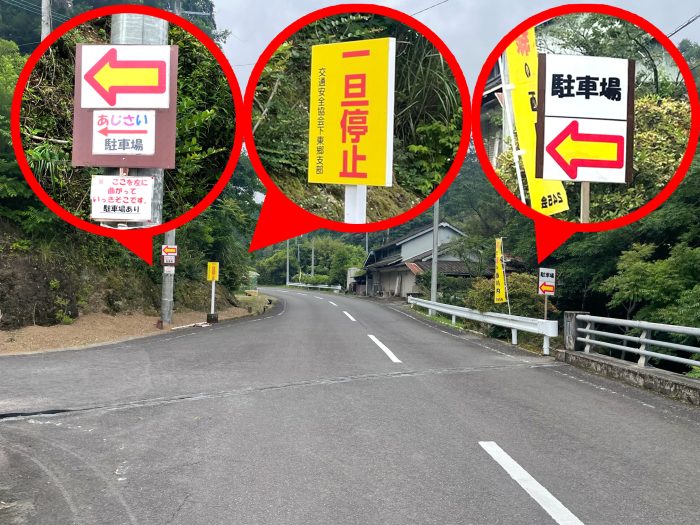 →道なりに進み、以下の看板を左折するとすぐ。