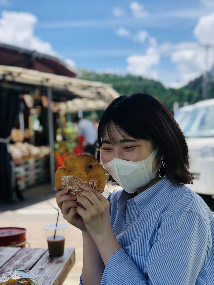 祁答院のソウルフード、牧瀬パンの「ひまわりパン」。FMさつませんだいパーソナリティ早水さんも「レトロなパッケージが可愛い」と手に取っていました。