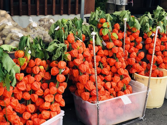 2日間で5000本!売れるというほおずき。ほおずき市では生産者さんも臨戦態勢で次々と補充をされるとのこと。ずらっとほおずきが並ぶ圧巻の風景は、写真愛好家にも大人気です。当日は新型コロナウイルス感染対策を取って販売を行います。状況により人数制限などありますので、ご協力をお願いします。
