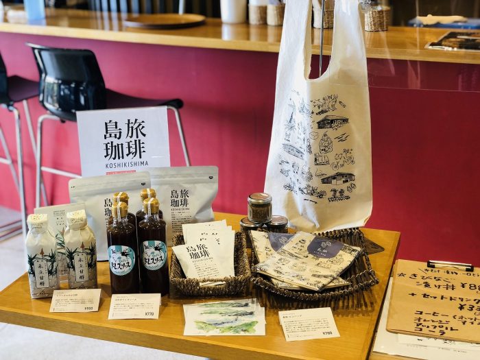 かつての中甑旅客待合所をリニューアルして生まれたコシキテラス。甑島の名産品を集めたショップやカフェがあり、のんびりと外の海や釣り人を眺めながら、思い思いに時を過ごせるスペースです。