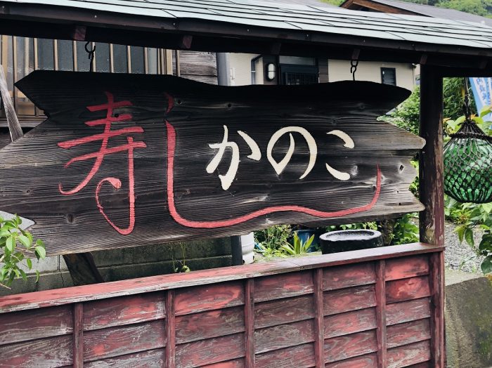 ランチに選んだのはここ、寿し膳かのこ。観光客に絶大な人気を誇る鉄板のお店です。店内には地元客のキープする焼酎がずらっと並び、地域の皆さんにも愛されているのが分かります。お昼時を迎え、お腹もすいてきたころ。期待が高まります!