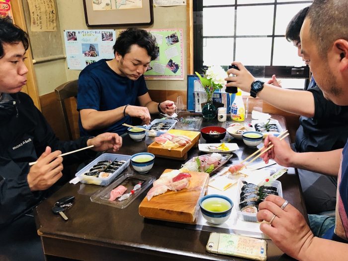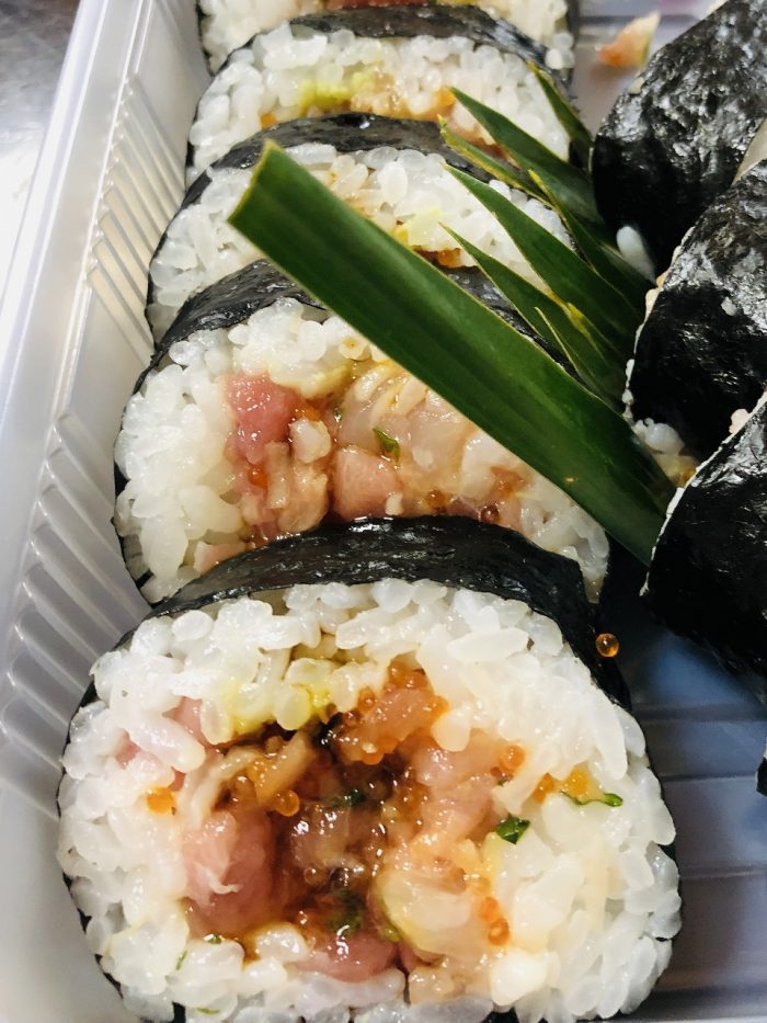 ロケ弁はかのこ特製「ぜんぶ巻き」その日のお魚を刻んで合わせ、トロトロの具がふんわりシャリに包まれて。これまた絶品で皆さんぺろっと完食していました。(通常メニューにはありません。ご了承ください)