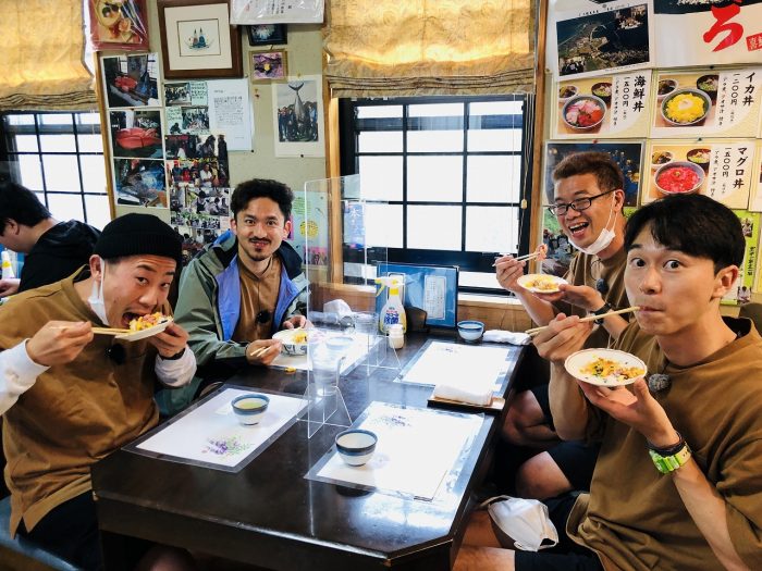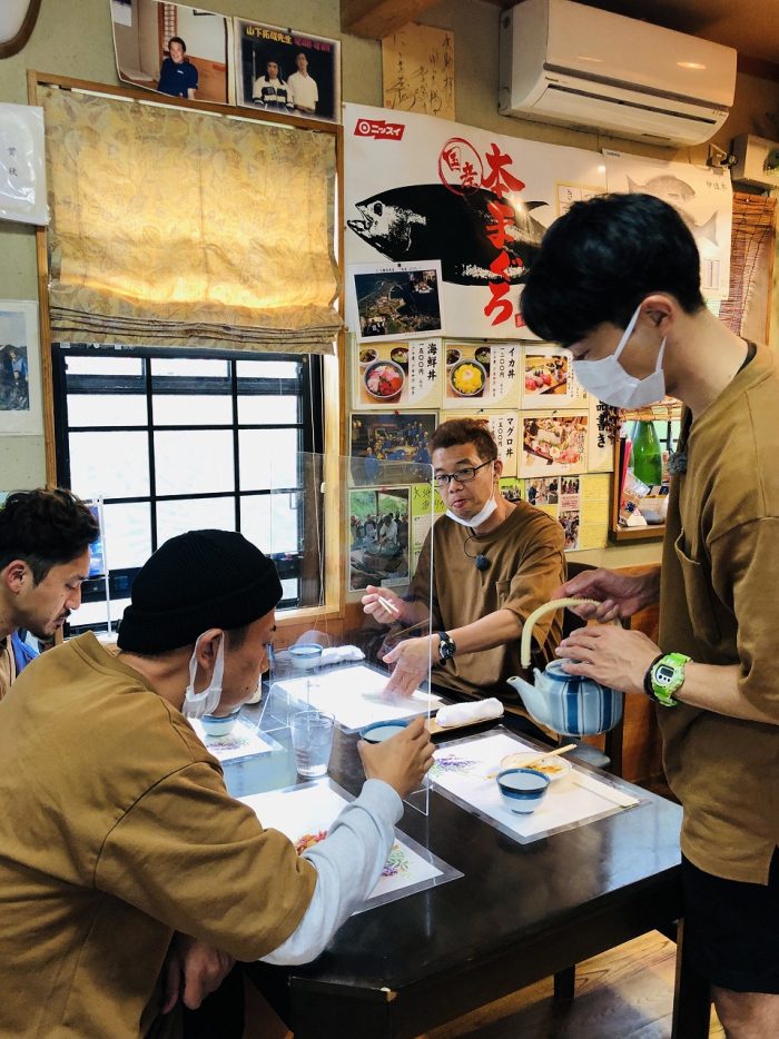 そんな大将の大きな愛に心打たれたC&K。盛り盛りのランチを食べた後、さらに自腹で海鮮丼を頼んだクリビーさん。一口ほおばると「口が漁に出たね」とダイナミックに味わいを表現!大トロの握りを食べたキーンさんは「口のなかにトロの脂が溶けて、その網をシャリが通過していく…」と目を閉じながらこれまた詩的なコメント。アーティストをさらに詩人にさせてしまう、絶品グルメおそるべし。
