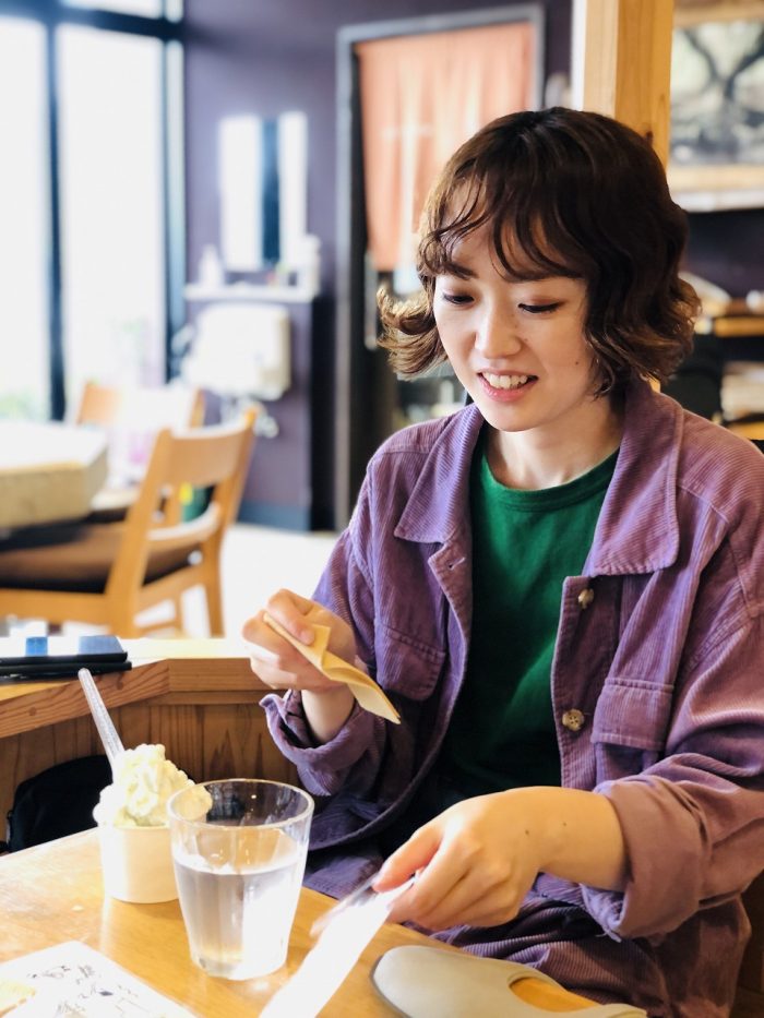 C&Kのマネージャーさんも島旅ジェラート「うみしお」を。つかの間ほっとひといき。