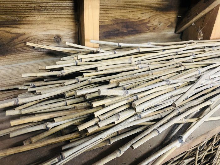 細い枝は「竹炭マドラー」用のもの。焼き締めた時に、ちょうどいいサイズになるものを揃えています。