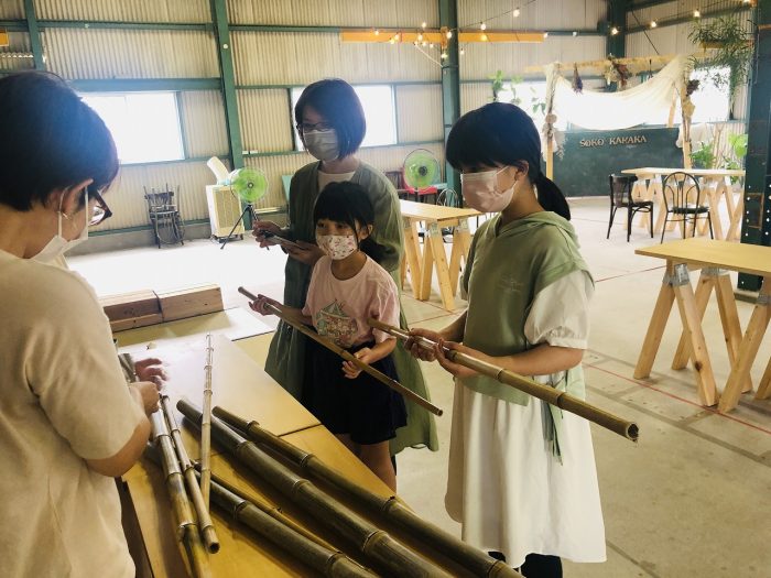 土曜日の朝8時。夏休みに入った子どもたちが続々とやってきました。まずは1本、竹を選んで…