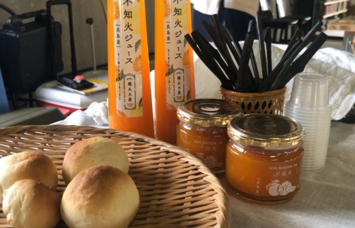 磯長水産の不知火(しらぬい)のジャムを添えて。姉妹で参加したふたりも「おいしい」とニッコリ。