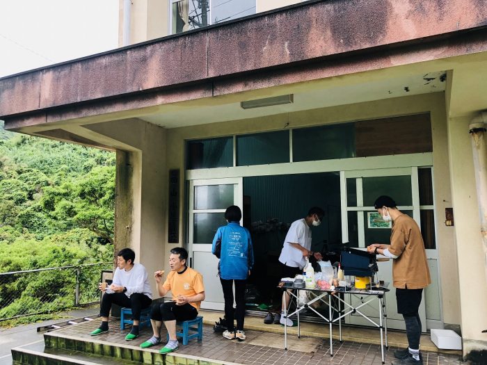 4人がキャンプをした体育館に行ってみると…何やらいい香りが!