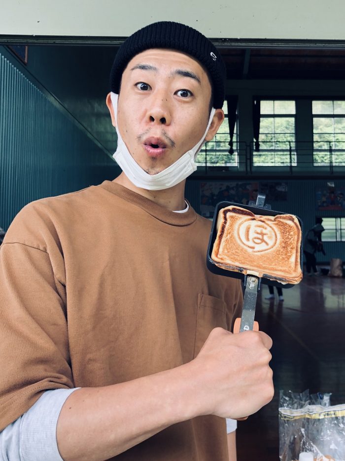 料理も極めるグルメ番長キーンさん。私物のホットサンド器を手に「ほ」の顔をして頂きました。(本当ありがとうございます)