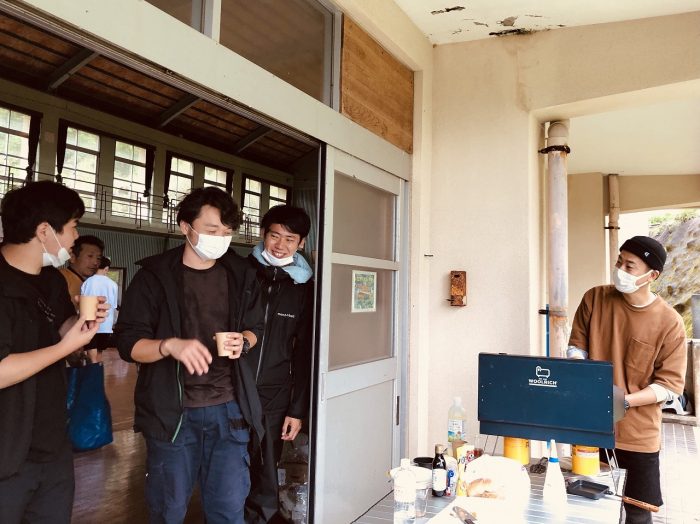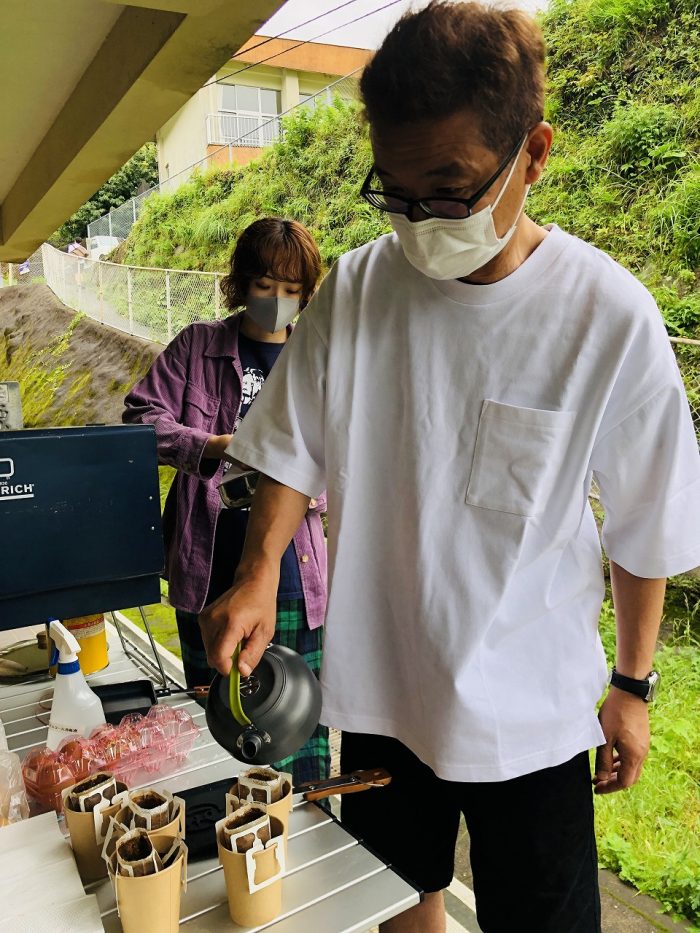 乾き亭げそ太郎さんはコシキテラスで購入した「島旅珈琲」を淹れています。全員分のコーヒーを…!