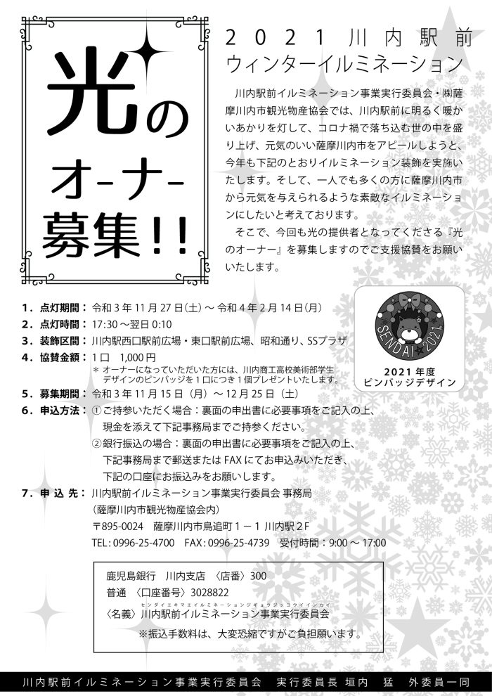 2 0 2 1 川内駅前 ウィンターイルミネーション 光のオーナー募集中!