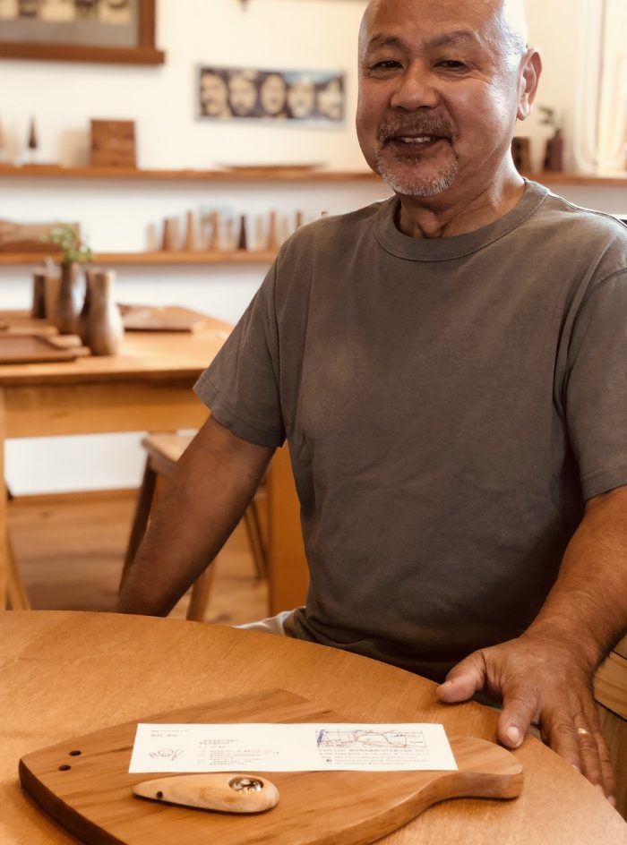 有村圭弘さんは薩摩川内市出身。川内高校を卒業後、多摩美術大学に進学し、グラフィックデザインを学びました。東京で就職したのち帰省し、30歳で家業を継ぎます。そのころから「木を手に何やら造ってたんですよね。それが楽しくて」と木工作家を志すように。ご結婚やご自身の病気など、さまざまな境遇の変化を経て、木工作家になろうと一念発起。鹿児島県立宮之城高等技術専門学校の室内造形科に入学します。有村さん46歳の時でした。