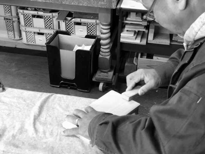 ギャラリーの奥にある工房では、ラジオを聴きながら作業に打ち込むそう。
