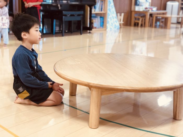 こちらは薩摩川内市勝目町にある「すくすく保育園」。子どもたちの使うテーブルは有村さんのオーダーメイド。園児の座高にぴったりで、エッジはすべて丸みを持たせてあります。子どもたちも大好きなテーブルだそう。