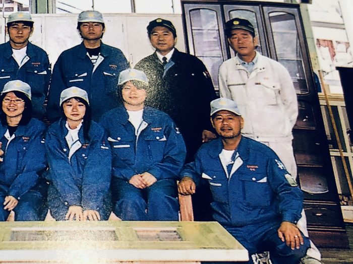 写真前列右端が有村さん。年下の学生たちにまじり、技術を習得。首席で卒業し、2006年に自身の工房ARI.ウッドスタジオを立ち上げました。