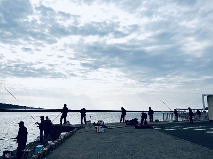 川内港は釣りスポットとしても人気、週末は多くの釣り人が集います。