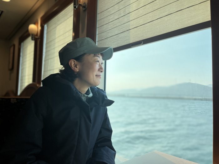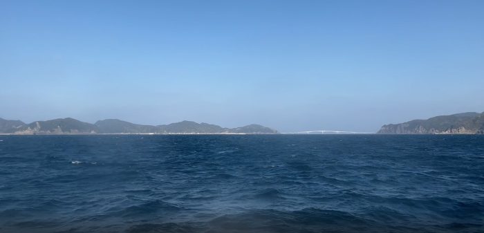 船窓から甑大橋を望むことができます。近くで見るのとはひと味違う、甑大橋の華奢な姿です。