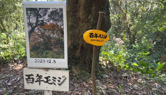 百年モミジと名付けられています。秋の紅葉は壮観だそう。散り敷く落ち葉を踏みしめながらのトレッキングもいいですね。