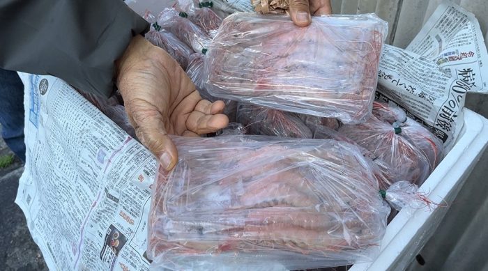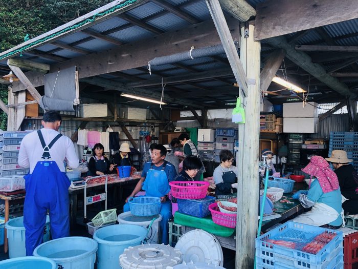 漁の時期には生タカエビの購入も可能です。※タカエビ漁は4~6月と9~12月に漁を行い、1~3月と7・8月は禁漁期間。長浜港から徒歩で行ける場所にタカエビの集荷場があります。詳しくはこちらの記事をご参照ください⇒1泊2日こしき島旅(2)