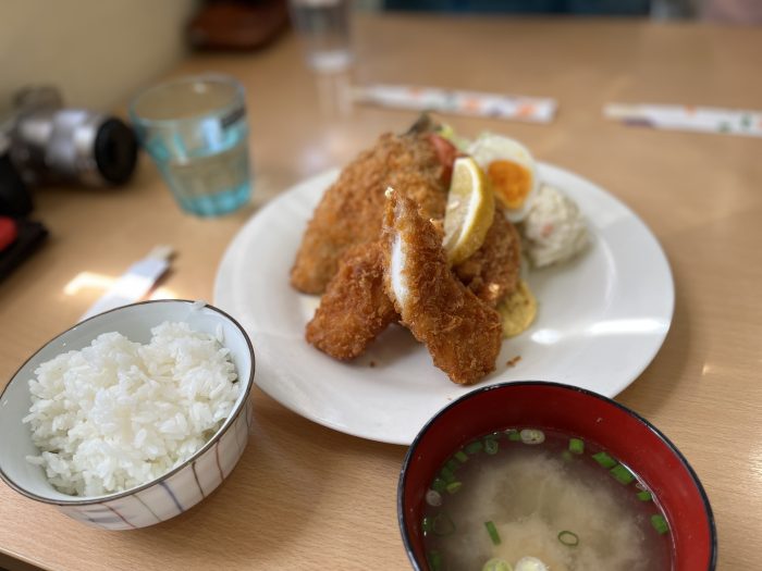 下甑の船の玄関口、長浜港ターミナル内にあります。下甑の名産品タカエビを8~9匹使ったふんわり食感のタカエビコロッケ入りシーフードフライ定食1,000円をはじめ、とんかつや天丼などボリューム満点の定食がいっぱい。地元の人も観光客も集うお店です。