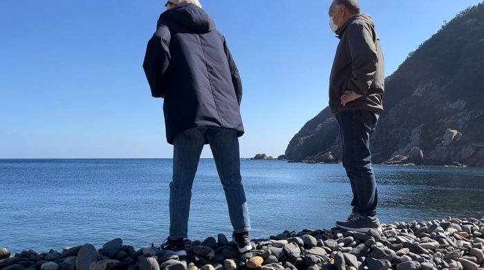 車での訪問をおすすめします。長浜から手打方面に向かい、青瀬トンネルを抜けて上写真「佐野浦バス停」前を右折し、道なりに進んでいきます。地上からはちょっと見つけにくく、「船に乗っていて気がついた」とは教えてくれた漁師さんの弁。まだまだ知られざる佐之浦、プライベートビーチのように楽しめます。ぜひ、訪れてみてください。