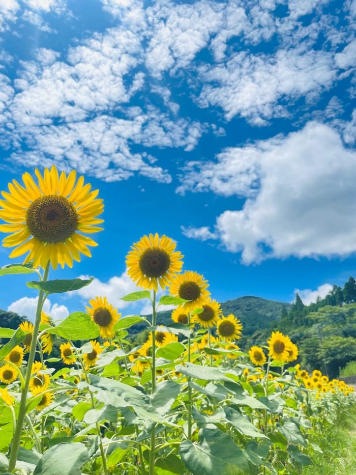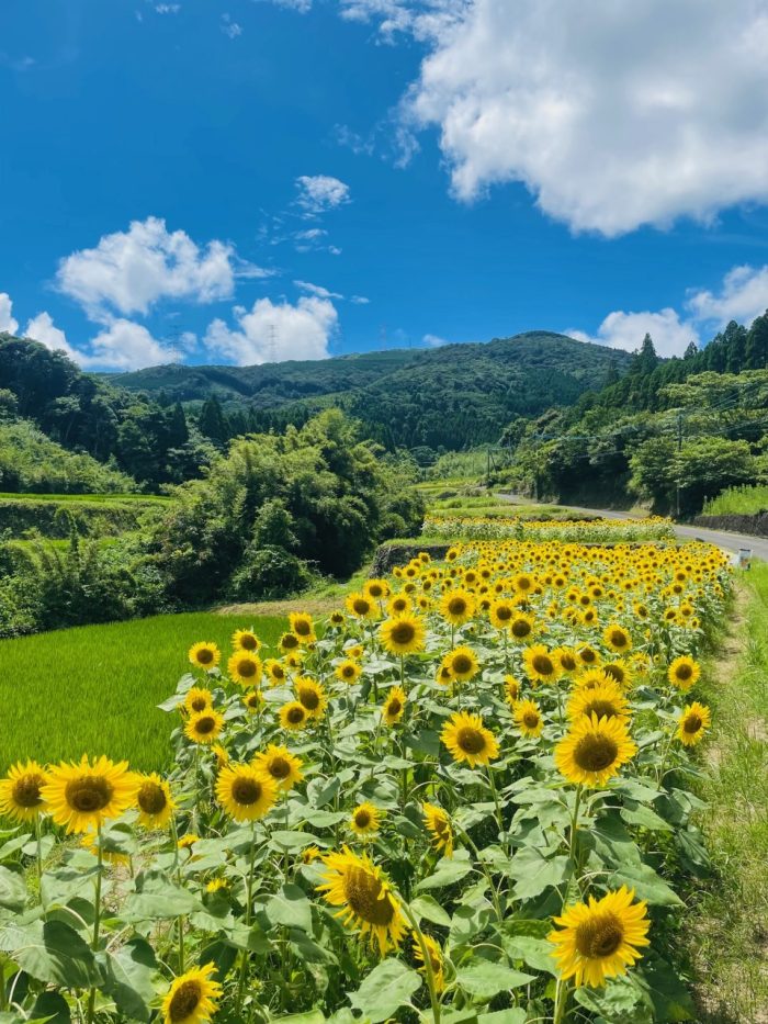 薩摩川内市青山町の高貫(こうかん)自治会のヒマワリが見頃を迎えています。