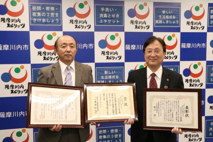 千葉県で行われた第6回全国豆腐品評会(10月29日、30日)で、予選を通過した3品すべてが入賞したくすもと食品(薩摩川内市楠元町)の北野広代表取締役が11月22日、田中良二薩摩川内市長を表敬訪問した。