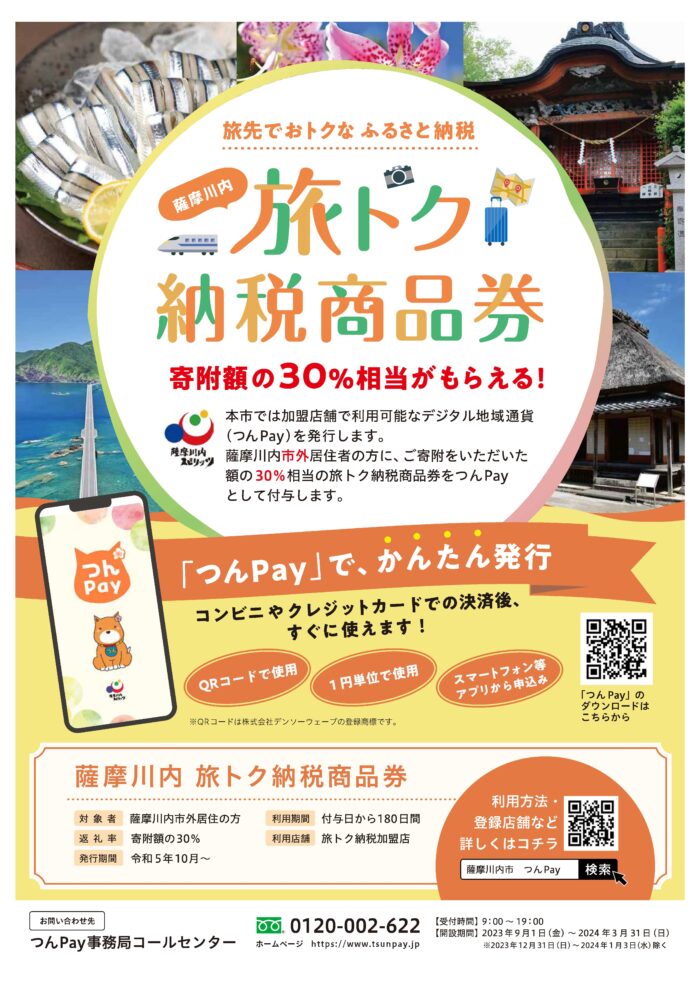 市外居住者の方限定!薩摩川内市旅トク納税を利用しませんか