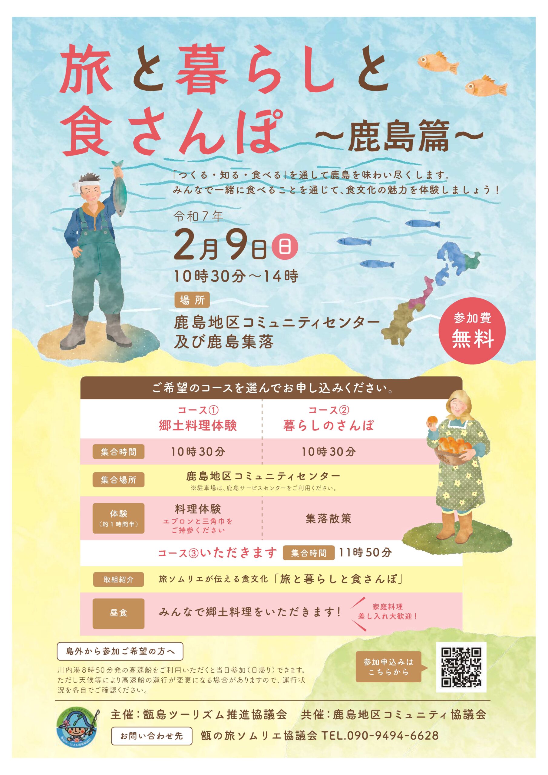 薩摩川内市甑島ツーリズム推進協議会では、郷土料理を通して甑島の伝統の継承、活用や情報発信を目的としたイベントを実施します。