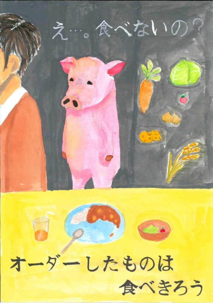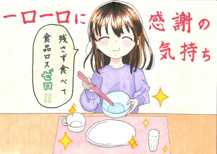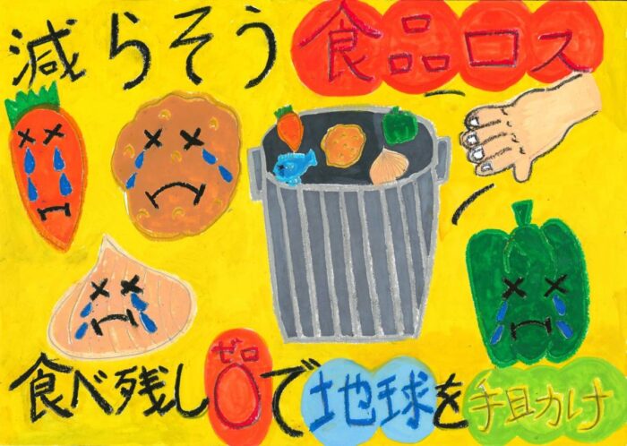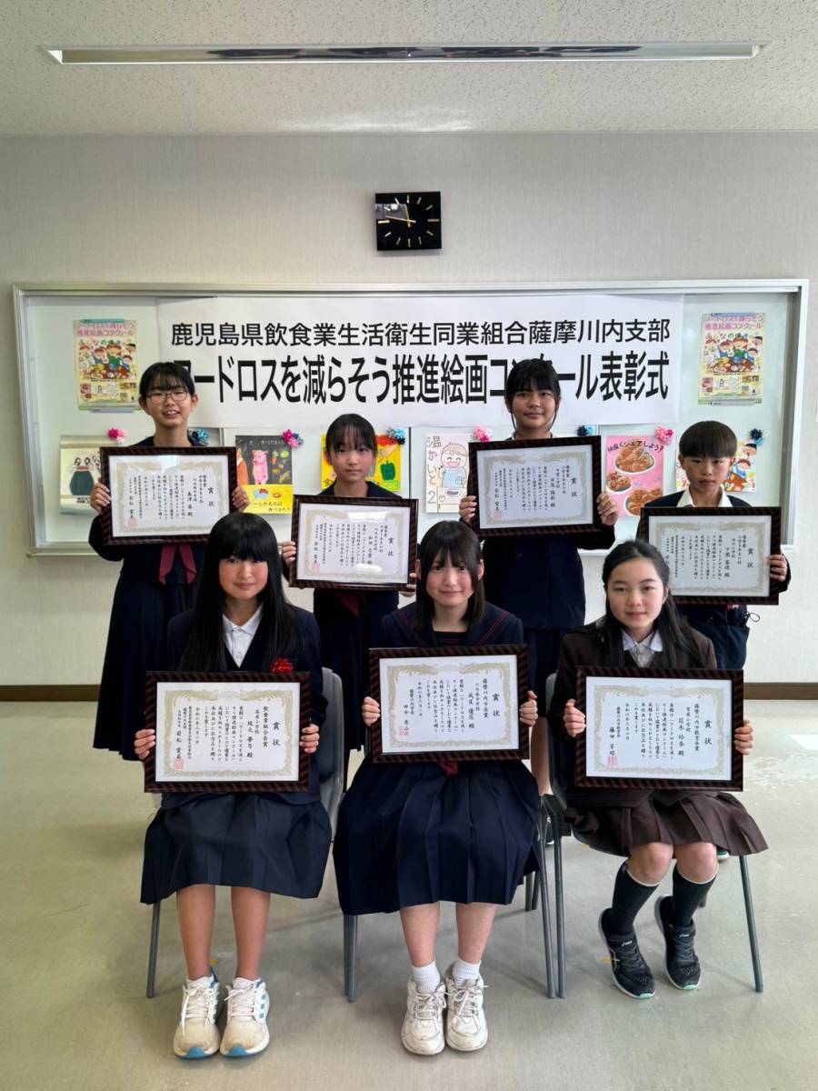 鹿児島県飲食業生活衛生同業組合 薩摩川内支部主催の「フードロスを減らそう推進絵画コンクール」にて、薩摩川内市内の小学校5・6年と中学校1・2年を対象に募集された149点の中から、入賞作品が8つ選出されました。