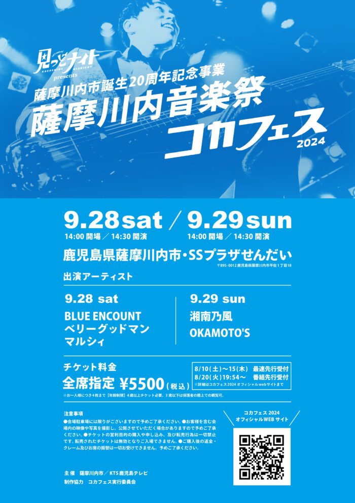 【テレビ情報】KTS鹿児島テレビ『見っどナイト』で『薩摩川内音楽祭 コカフェス2024』開催スペシャルが放送されます!