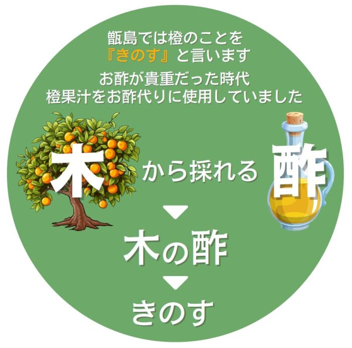 お酢が貴重だった時代、橙(だいだい)果汁をお酢作りに使用していた甑島では、橙のことを「木の酢(きのす)」と呼んでいます。