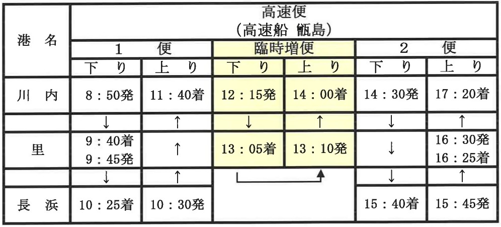 ※臨時増便は、長浜港には寄港しませんので、ご注意ください。